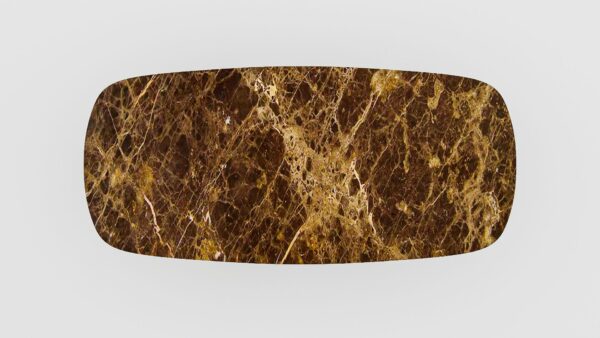 De verschillende bruintinten, van donker tot lichtbruin en soms zelfs richting caramel, maken deze bruine Deens ovaal marmeren tafel tot een waar kunstwerk. Het is een marmersoort die we veel terugzien en dat komt omdat deze bruine Deens ovale marmeren tafel uitstekend te combineren is met aardse elementen als hout, planten en kleuren als zand en beige. Een zeer elegante marmersoort met een zachte en uitdagende ‘tekening’.