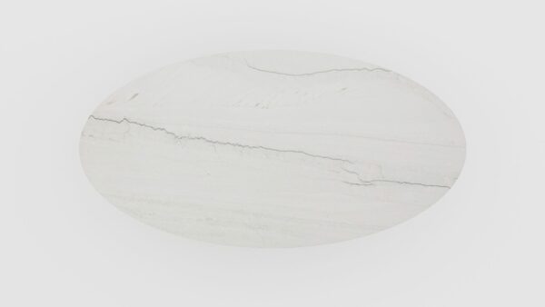 Deze luxe en duurzame witte eettafel ovaal van Mont Blanc kwartsiet heeft een ivoorwitte basis met grijzig tot groen/witte adering. De ovaal witte eettafel heeft een elegante mix van kleuren en lijnenspel die voor soberheid zorgen, zonder aan persoonlijkheid in te boeten. En zoals je misschien wel weet over deze ovale eettafel: kwartsiet is een zeer harde en duurzame steen, waar je geen vlekken in krijgt van zuur en ook vrij krasbestendig is!