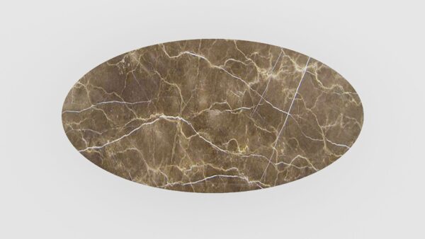 Als je een ovale marmeren tafel zoekt die goed te combineren is met je smaak en interieur, dan is dit je beste vriend. Door de verschillende bruine kleuren past de bruine marmeren eettafel perfect bij bijvoorbeeld een houten vloer of meubels. Maar ook met andere natuurlijke elementen in je interieur zoals planten en leer. Geef je interieur een unieke uitstraling en ga voor deze bruine marmeren ovale eetkamertafel!