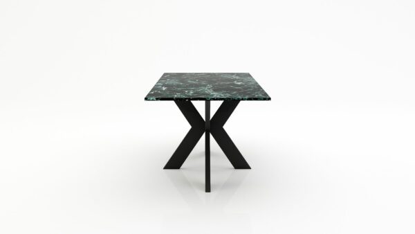 Deze diep groene marmeren tafel met soms wit en groene aders of ‘ijsschotsen’ hebben een zeer uniek groen kleurenpalet. Diep en donker gepolijst, maar zacht en warm als het gezoet (mat) is afgewerkt. Deze rechthoekige marmeren tafel heeft daarnaast als voordeel dat je er minder snel vlekken in krijgt dan andere marmersoorten, omdat er van nature minder kalk in zit. Dus zeker met kids of voor liefhebbers van een cocktails of twee (of drie) is dit een perfecte keuze.