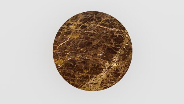 De verschillende bruintinten, van donker tot lichtbruin en soms zelfs richting caramel, maken deze bruine ronde marmeren tafel tot een waar kunstwerk. Het is een marmersoort die we veel terugzien en dat komt omdat deze bruine ronde marmeren tafel uitstekend te combineren is met aardse elementen als hout, planten en kleuren als zand en beige. Een zeer elegante marmersoort met een zachte en uitdagende ‘tekening’.
