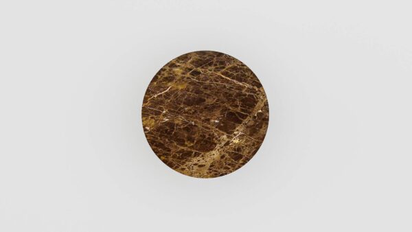 De verschillende bruintinten, van donker tot lichtbruin en soms zelfs richting caramel, maken deze bruine ronde marmeren salontafel tot een waar kunstwerk. Het is een marmersoort die we veel terugzien en dat komt omdat deze bruine ronde salontafel uitstekend te combineren is met aardse elementen als hout, planten en kleuren als zand en beige. Een zeer elegante marmersoort met een zachte en uitdagende ‘tekening’.